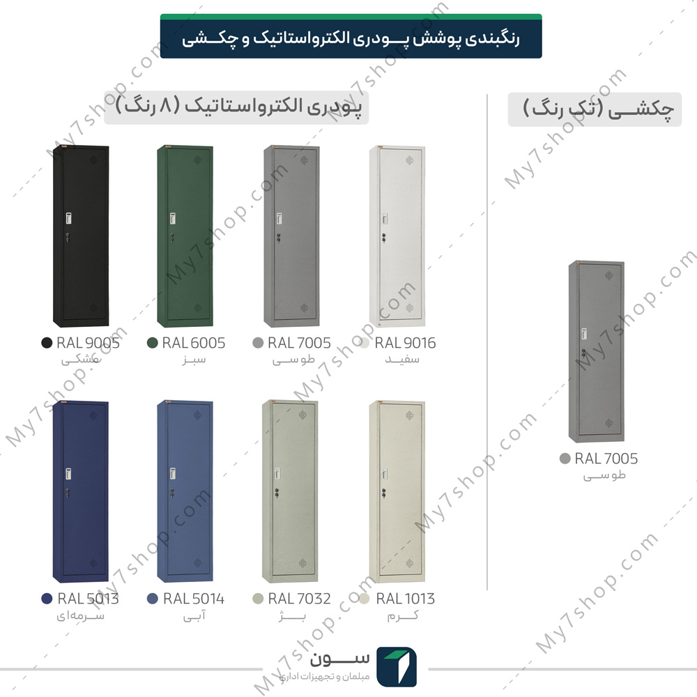 نمونه عکس های داخل گالری مربوط به کدام ضخامت و پوشش رنگ از کمد فلزی رختکن تک درب 6317 میباشد؟